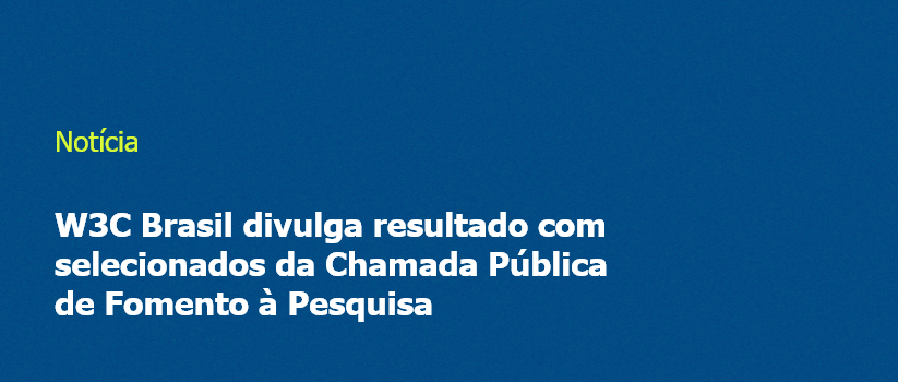 O Escritório Brasileiro do W3C, a partir de decisão do CGI.br – Comitê Gestor da Internet no Brasil e em parceria com a SBC – Sociedade Brasileira de Computação, lançou Chamada Pública com o objetivo de seleção de propostas para pesquisa e participação de pesquisadores brasileiros nos grupos de trabalho de definição de padrões Web no Consórcio Internacional W3C.