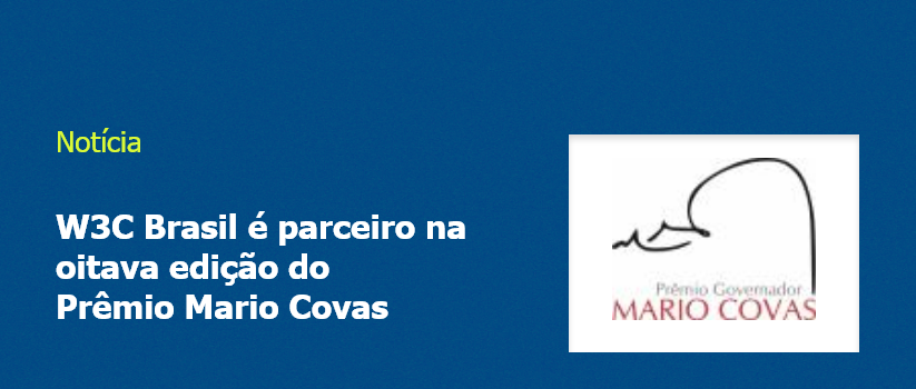 Esta oitava edição do Prêmio Mario Covas conta com a parceria do W3C Brasil na categoria “Governo Aberto”. O Prêmio Mário Covas é uma iniciativa da Secretaria de Estado de Gestão Pública de São Paulo e a participação do W3C Brasil inova por introduzir o reconhecimento de iniciativas de cidadãos que utilizam dados governamentais com o objetivo de melhorar a qualidade dos serviços públicos e aprimorar o exercício da cidadania. Podem concorrer projetos que tenham como objeto dados e informações governamentais disponíveis, objetivando melhorar a qualidade dos serviços públicos e aprimorar o exercício da cidadania no Governo do Estado de São Paulo e/ou dos municípios paulistas.